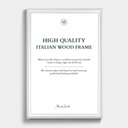 When you add a frame + art print you get the artwork "ready to hang" right out of the box - We custom make each frame by hand so you get professional framing included in the price